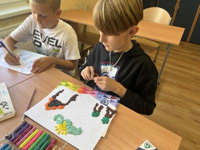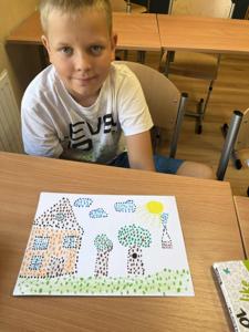 o dziewczynce Vashti, która odkrywa swój artystyczny talent. Obchody święta mają na celu rozwijanie wiary we własne możliwości, zachęcanie do twórczego działania i zabawy wśród dzieci i dorosłych. Uczniowie klasy czwartej podczas lekcji religii wykonywali prace plastyczne, których tematem był kropkowy świat. Jak zwykle pomysłów było wiele i każdy starał się, by jego świat był wyjątkowy. Za pracowitość, przygotowanie i zaangażowanie podczas zajęć wszystkim bardzo dziękuję.