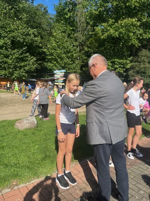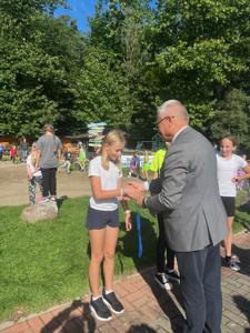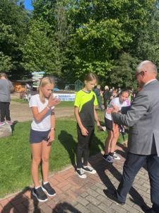 15 września 2025r w Pasłęckim Parku Ekologicznym odbyła się Inauguracja Sportowego Roku Szkolnego 2025/2026 oraz Mistrzostwa Powiatu Elbląskiego w Biegach Przełajowych Szkół Podstawowych. W zawodach wystartowali uczniowie szkół z całego powiatu na dystansach 600 m klasy 2-5 i 800 m klasy 6-8. Bardzo dobrze w tych zawodach zaprezentowali się zawodnicy z naszej szkoły, którzy w rywalizacji szkół podstawowych zdobyli 2 medale. Michał Aleksiejczyk zajął 1 miejsce i zdobył złoty medal, Emilka Tyburska 2 miejsce i zdobyła srebrny medal. Oprócz uczniów medalowych na pochwałę zasługują również nasi pozostali biegacze: Marysia Pastuszak i Milena Tyburska, które zajęły 5 miejsce w swoich kategoriach. Dawid Chodubski zajął również 5 miejsce w kategorii klas 5. Michał Białek, Magda Frączak i Szymon Wawer zajęli 6 miejsce w swoich grupach wiekowych. Wszystkim uczestnikom serdecznie gratulujemy i życzymy dalszych sukcesów sportowych. Opiekunami byli nauczyciele wychowania fizycznego Bożena Mięsikowska i Andrzej Szponar. Organizatorem biegów był Elbląski Szkolny Związek Sportowy.