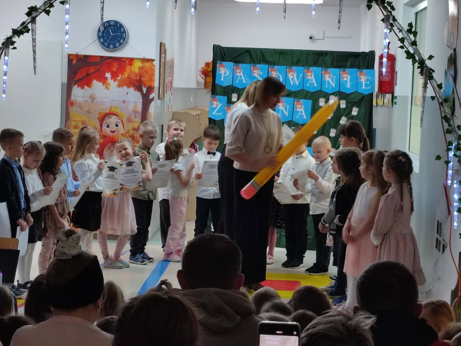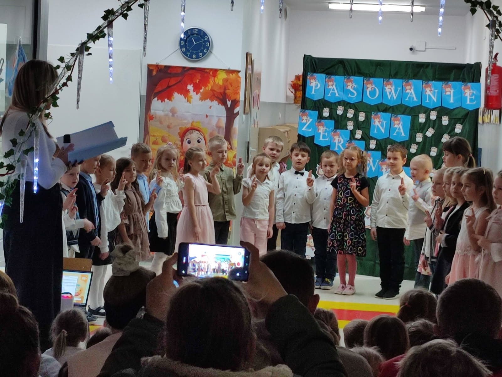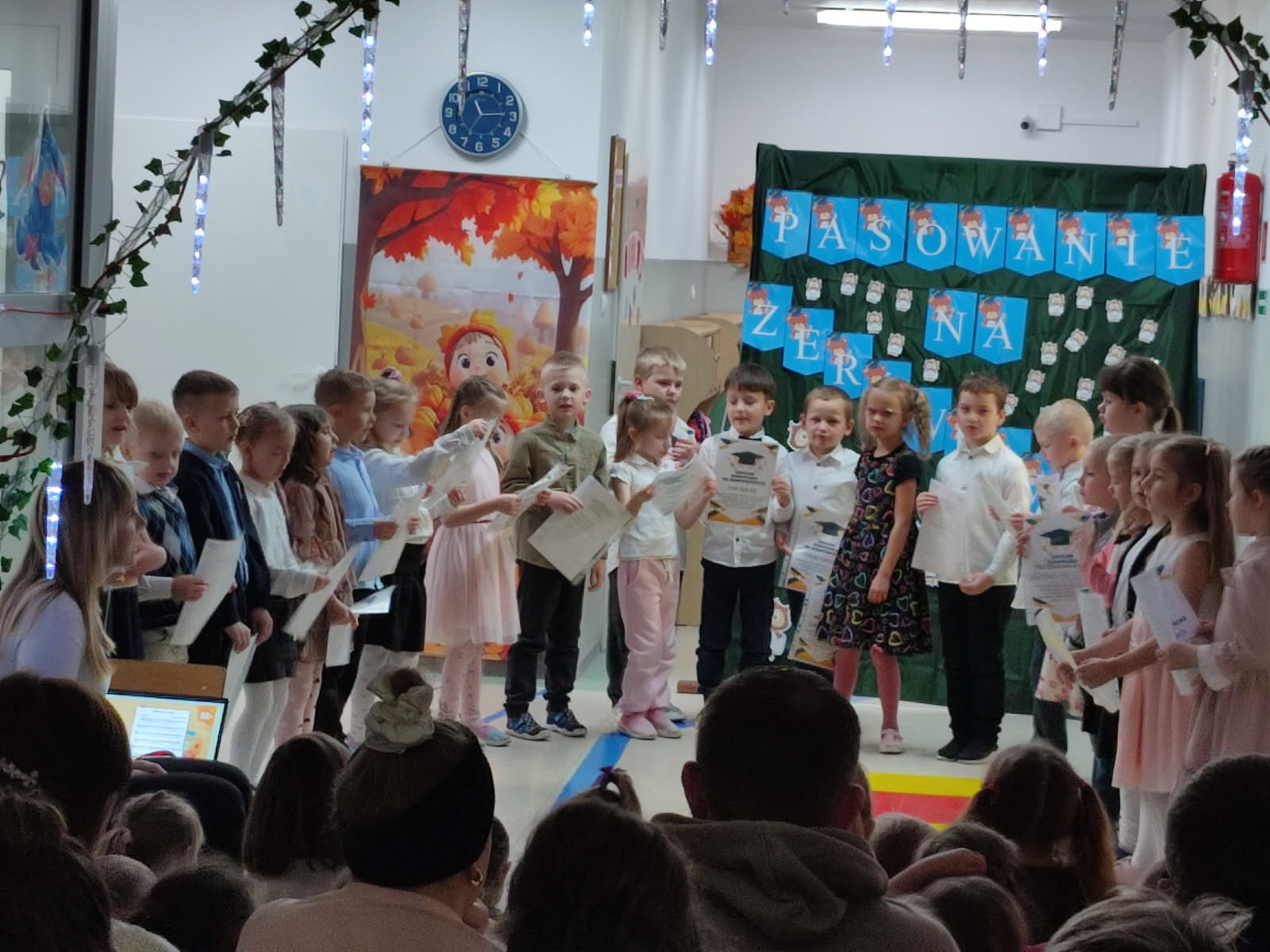 Dla Sówek dzień 26 listopada 2025 roku był dniem szczególnym. Tego dnia oficjalnie złożyli Ślubowanie i zostali pasowani przez panią dyrektor Alicję Goszcz - Zając na zerówkowiczów.